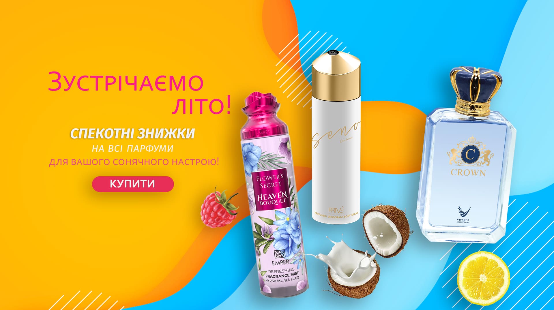 З 12.05. по 02.06.25 року даруємо знижки на всю парфумовану продукцію! Обирайте туалетні, парфумовані води, бодімісти, дезодоранти та набори з максимальною вигодою! Зустрічайте літо з улюбленими ароматами!