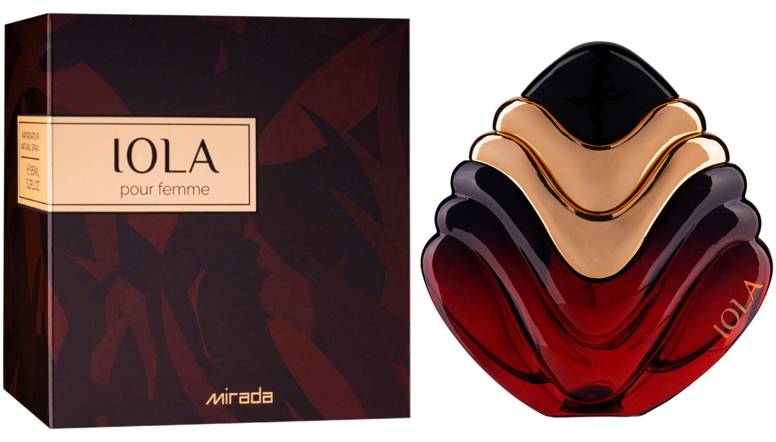 Жіноча парфумована вода Iola Mirada представлена в дуже стильному, красивому флаконі незвичайної форми. Плавні лінії і вигини немов би оживляють парфум, наділяють його особливою таємничістю і загадковістю. Звучить парфумерна композиція по-святковому, феєрично. Соковиті фрукти і ягоди на чолі з персиком і полуницею починають мелодію, зі старту радуючи оптимістичними нотами. Серце аромату наповнене квітковим фльором. Ніжна герань, солодка орхідея, романтичний цикламен наділяють парфум особливою легкістю, ніжністю та жіночністю. Кінцеві акорди належать глибокому сандалу і землистому запаху моху. Парфум любові і радості, надихаючий творити і слідувати велінням свого серця.